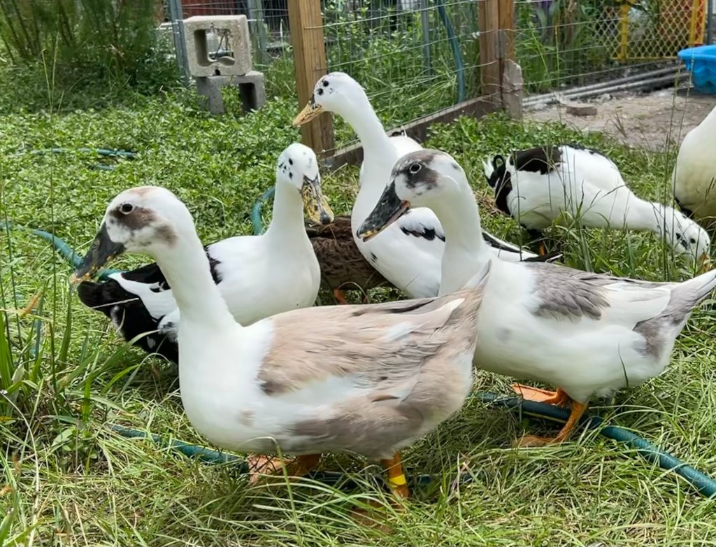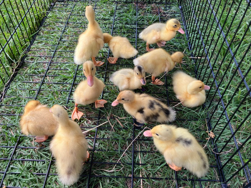 Early 2023- This year so far…we are beyond ecstatic that it turns out of the 6 ducks from Estes Hatchery, we hit the jackpot and got 5 girls! Vella is one of our friendliest and she has a beautiful sheen on her black, she’s definitely a keeper. One day I’ll get a picture of all those shimmers! The younger group will add a lot of color to the flock in just a few weeks.