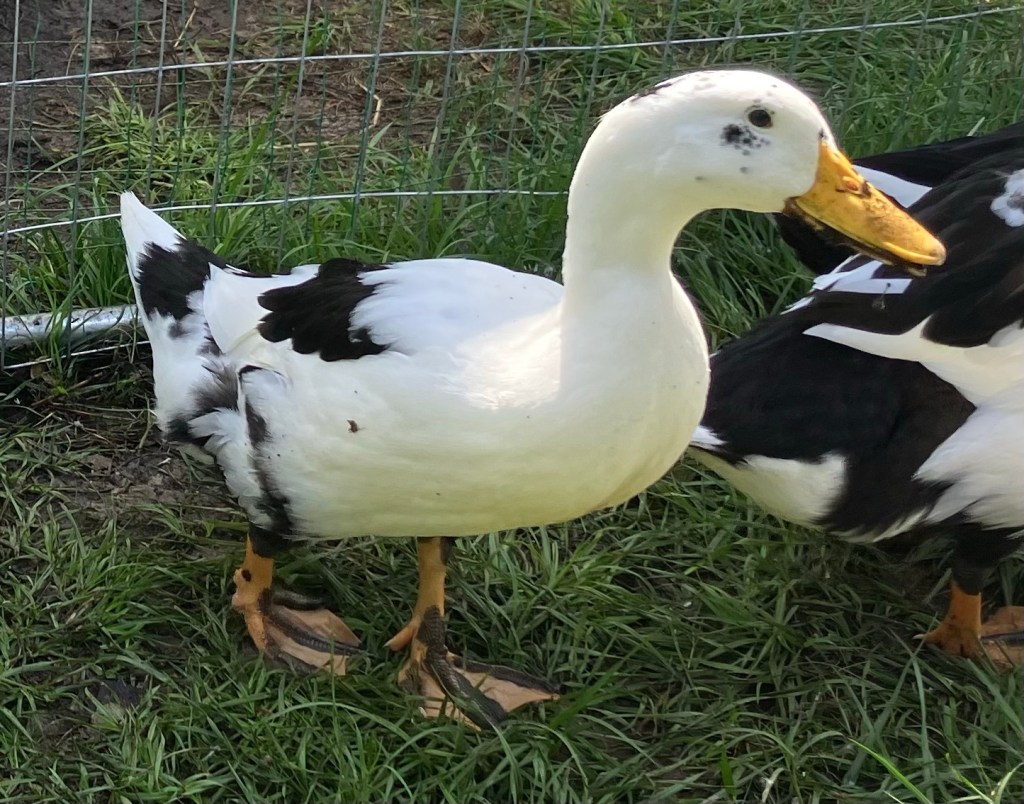 Ancona ducks are very low in number. They are considered an American breed by most people, but are not recognized as a breed by the American Poultry Association (APA). The APA is willing consider a standard for Anconas but it seems that the current proposed standard is too narrow, too strict. Ancona ducks have many traits that make them unique; they can lay different color eggs. There is a lovely variety of colors of Anconas; chocolate and white, blue and white, silver and white, lavender and white, and the most common the black and white. There is also a tri-colored variety that comes to be colored in many colors and patterns, even to have some pied like a mallard. The proposed APA standard would exclude all except the white eggs and the black and white. These excluded ducks are too much of the current overall Ancona count to make that choice even feasible. If we exclude that much of their genetic base, they’re doomed. Please go over to the North American Ancona Duck Alliance’s website and read about how we are helping this awesome breed by using Holderread’s standard instead of theproposed APA one.